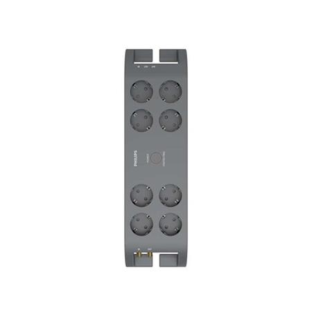 Elosztósor, 8 csatlakozóaljzat, túlfeszültség-védelemmel, 2 m kábel, PHILIPS, sötétszürke